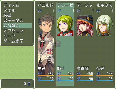 /*:ja * @plugindesc メニュー画面のレイアウトを変更します。(TP表示対応) * @author Yoji Ojima (改変:ゆわか) * * @param backGroundBitmap * @desc 背景にするビットマップファイルです。 * img/pictures に置いてください。 * @default * * @param bgBitmapItem * @desc アイテム画面背景にするビットマップファイルです。 * img/pictures に置いてください。 * @default * * @param bgBitmapSkill * @desc スキル画面背景にするビットマップファイルです。 * img/pictures に置いてください。 * @default * * @param bgBitmapEquip * @desc 装備画面背景にするビットマップファイルです。 * img/pictures に置いてください。 * @default * * @param bgBitmapStatus * @desc ステータス画面背景にするビットマップファイルです。 * img/pictures に置いてください。 * @default * * @param bgBitmapOptions * @desc オプション画面背景にするビットマップファイルです。 * img/pictures に置いてください。 * @default * * @param bgBitmapFile * @desc セーブ/ロード画面背景にするビットマップファイルです。 * img/pictures に置いてください。 * @default * * @param bgBitmapGameEnd * @desc ゲーム終了画面背景にするビットマップファイルです。 * img/pictures に置いてください。 * @default * * @param bgwinonoff * @desc デフォルトウインドウを表示するか。(0:表示 1:非表示) * @default 0 * * @param maxColsMenu * @desc アクターを表示するウィンドウの1画面の登録最大数です。 * @default 4 * * @help このプラグインには、プラグインコマンドはありません。 * * - アクターに立ち絵を利用します。 * (この機能は、AltMenuScreen2.jsからの抜粋です) * * アクターのメモに以下のように書いてください: * <stand_picture:ファイル名> ファイル名が、そのアクターの立ち絵になります。 * ファイルは img/pictures に置いてください。 * 記入例) * <stand_picture:Package1> * *「キャンプメニューにもTP表示」に対応しました。 * アクターかクラスの特徴で、TP持ち越しを付加してないと無意味です。。 * * 村人Cさまのご協力により、表示するアクター数が4の時は * フォントサイズを変更し、最大HPも表示できるようになりました。 * * AltMenuScreen3.jsから、背景設定機能を移植しました。 * * 使用報告不要・クレジット不要・改変可・商用利用可 * もし何か問題が起きても、当方は一切責任を負いません。ご了承ください。 */