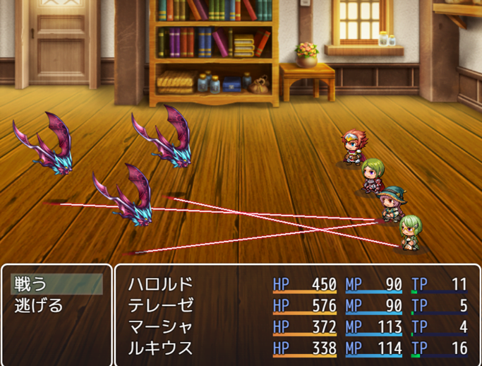 機能概要: 敵がアクターに対しヘイトを持ち、最もヘイトの高いアクターを狙うようになります。ヘイトはバトル中の行動で変化します。